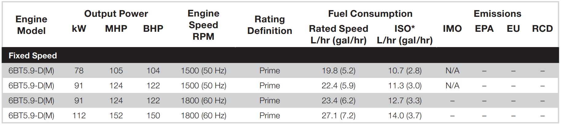 *Average fuel consumption based on ISO 8178 E3 Standard Test Cycle (variable speed models) and ISO 8178 D2 Standard Test Cycle (fixed speed models)